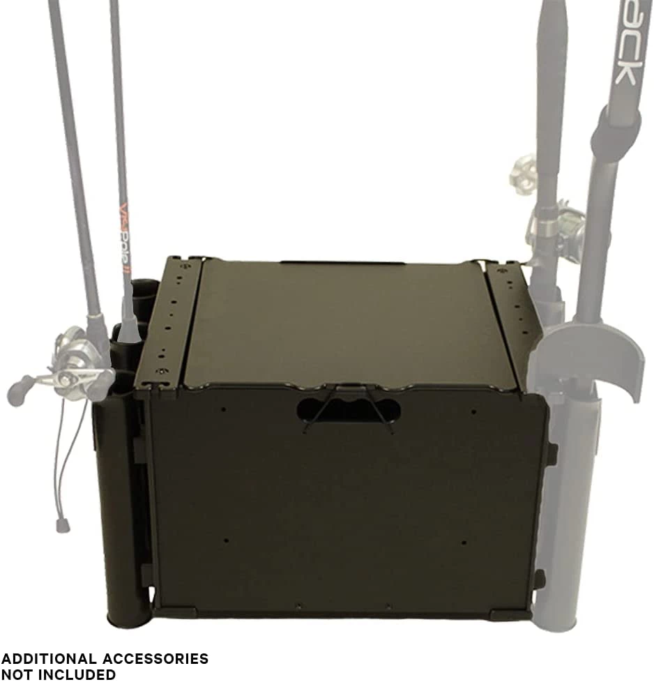 The YakAttack BlackPak crate system is poised to set a new standard in rod, tackle, and gear management on kayaks and standup paddleboards. It ships flat and assembles quickly using common hand tools. The interlocking joint design creates incredible strength, promising many years of trouble-free service. The clean, tactical appearance demands attention and the rapidly developing line of YakAttack BlackPak accessories means there’s always another problem solving innovation just around the corner. The YakAttack BlackPak has stations for up to 10 rod holders, each of which can be installed vertically or angled. When 4 or more rod holders are used, they can be installed in the “high and dry” position, preventing unwanted seepage from a wet tank well. The top rails are configured to accept all YakAttack GearTrac or Mighty Mount compatible accessories. The lid is hinged and latched with elastic cord, and is designed for easy removal, allowing it to double as a bait board.
