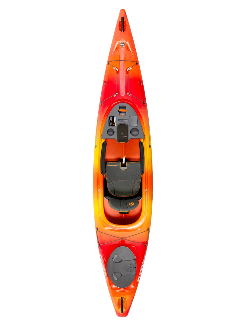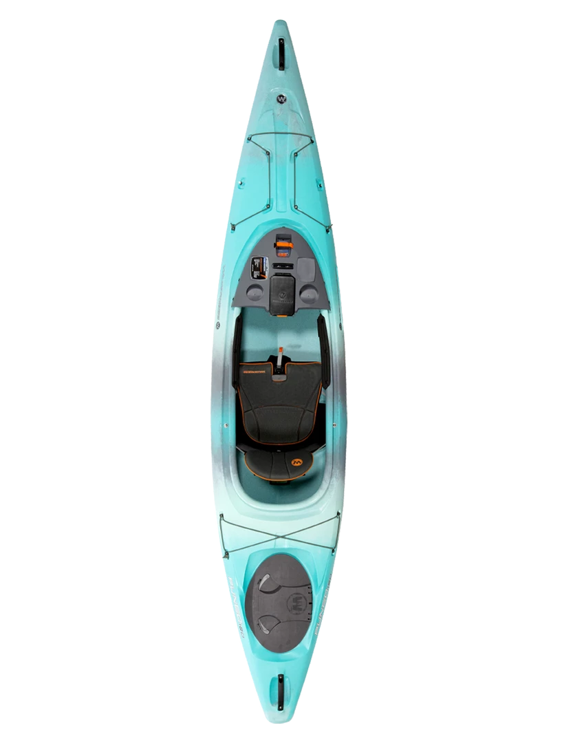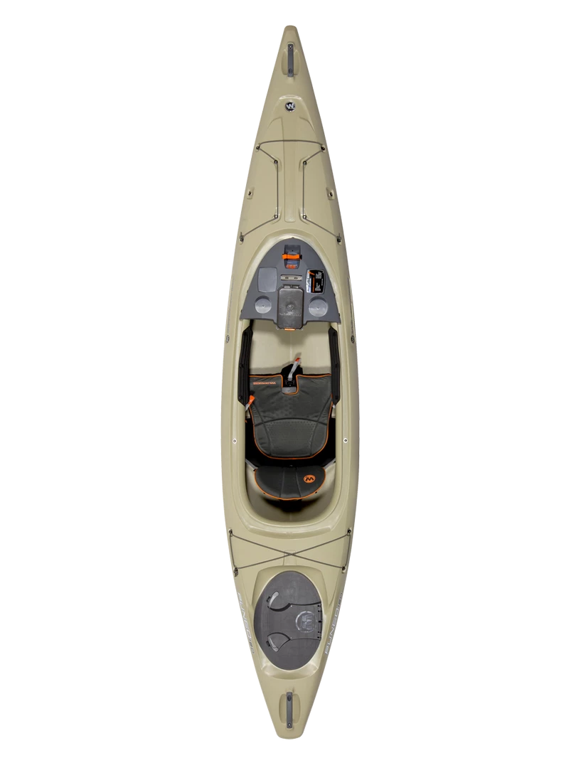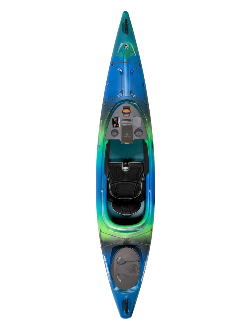 The patented Phase 3® AirPro seating system is the core of what makes Wilderness Systems the world’s most comfortable kayaks; the Pungo’s comfort and adjustability is built just for you, allowing you to be fully immersed in your on-water experience. The Pungo also integrates the most comprehensive kayak dashboard interface for optimal customization and features. It includes the removable DryTec dry box that allows you to take your valuables with you, two cup holders for your favorite beverage, a recess for the Wilderness Systems Lithium Battery (sold separately), SlideTrax ™ to hold mounts for phones, fishing rods and other accessories, and two mounting platforms for customized accessorizing. A protective and replaceable skid plate, comfortable rigid carry handles, industry-leading storage capabilities, and configurable deck bungee rigging rounds out a robust list of attributes.