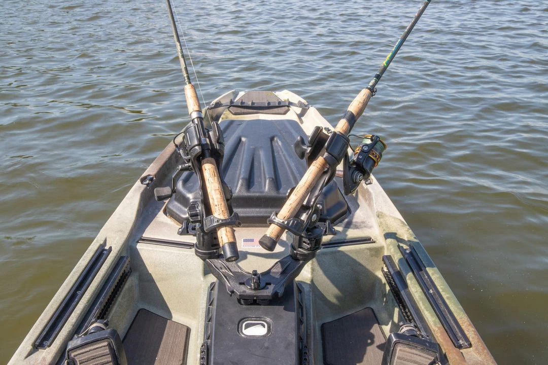 In typical YakAttack fashion, what started as an idea for a single offset RotoGrip Paddle Holder resulted in a product with a bit more versatility. The end result of the DoubleHeader Track Mount was a unique addition to the YakAttack product line that allows the ability to attach various accessories using a single attachment point. If you already own two RotoGrip Paddle Holders, then simply remove the rubber washer included with your paddle holders, insert the MightyBolt through the underside of the DoubleHeader, and tighten the body of the RotoGrip. The DoubleHeader in that configuration provides the perfect offset paddle holder solution moving your paddle off the side of your kayak, freeing up track space. Let’s say you want to add dual Omega Rod Holders for crappie fishing. The mounting holes at the end of the DoubleHeader are LockNLoad compatible and allow for easy attachment of LockNLoad accessories like the Omega or Omega Pro. Looking to maximize the number of rods on your kayak for tournament day? The DoubleHeader Track Mount serves as the perfect mounting system for dual AR Tube Rod Holders.