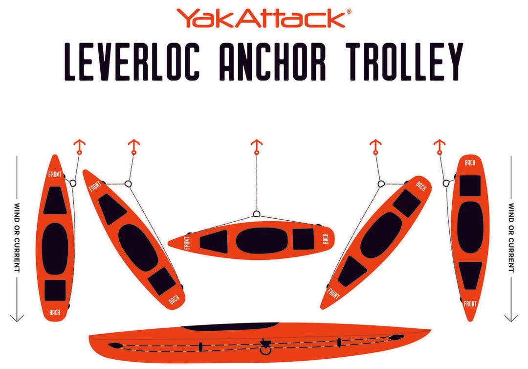 The first anchor trolley designed specifically for the job, the YakAttack LeverLoc™ Anchor Trolley features a LeverLoc™ line clamp, which locks your trolley line in place with a simple “flip of a switch” motion. Keeping the trolley lines in line is the PadHook, a simple but clever design that combines the functionality of both a pad-eye and a hook, keeping even the tightest trolley lines in place on the side of the kayak, not over your gunwale. When not in use, the easy-knot trolley ring snaps into the base of the LeverLoc™, quietly secured until deployed. Includes 35’ of USA made 550 paracord with a highly reflective tracer. This model features the HD option, which gets you two extra PadHooks plus backing plates for the pulleys and LeverLoc™, enabling a heavy duty install when compared to the self-threading screws included in the standard kit. Features YakAttack Stealth Pulleys for super smooth operation. The use of a YakAttack Rigging Bullet, RB1032, is highly recommend for installs where the install location is out of arms reach.