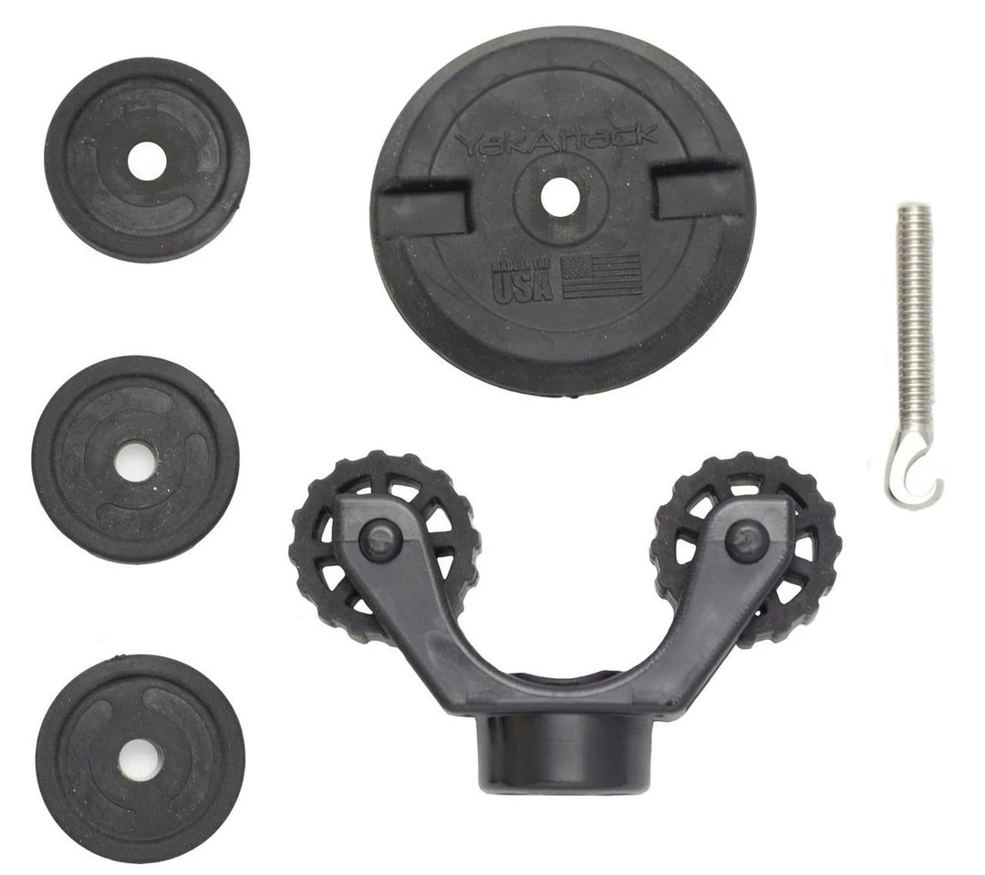 Included with this kit are three black spacers. The spacers are used to adjust the height of the paddle so the j-hook doesn’t come in contact with your paddle shaft. Start out using one spacer and tighten till snug. If the top of the metal j-hook comes in contact with you paddle shaft then add a second spacer. Do not over-tighten.