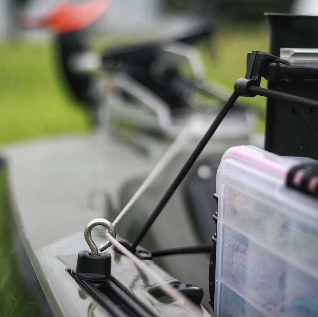 These tie-downs come with a Mighty Bolt base. Compatible with YakAttack MightyMount’s, GearTrac, and most other kayak track systems from Scotty Fishing Products, RAM Mounts, and YakGear. For FeelFree Kayaks, 3 Water Kayaks, and Jonny Boats you will need an adapter to be compatible. We offer the needed adapter in a single pack (AAP-1012) and a six pack (AAP-1012-6). Perfect as an anchoring point to secure a cooler or other accessory, as well as being a great adjustment point for directing steering cables on the deck of your kayak. Sold in a two-pack.
